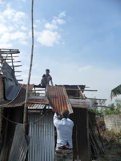3. Tatay Manarpiis and Brother Arnold helping put the roof back on Nanay's house!